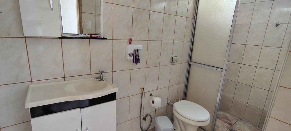 No pavimento superior, dispõe de dois dormitórios, banheiro social com box e varanda privativa.